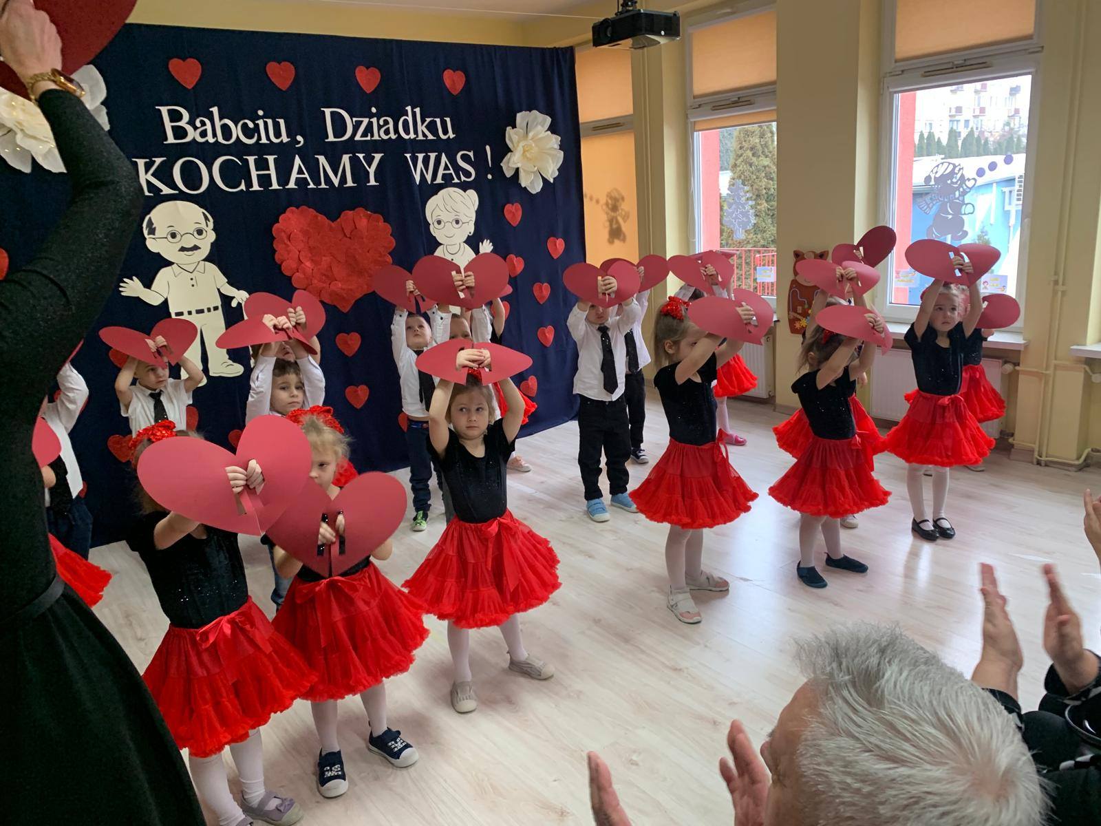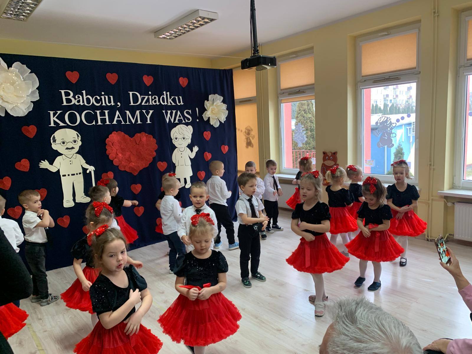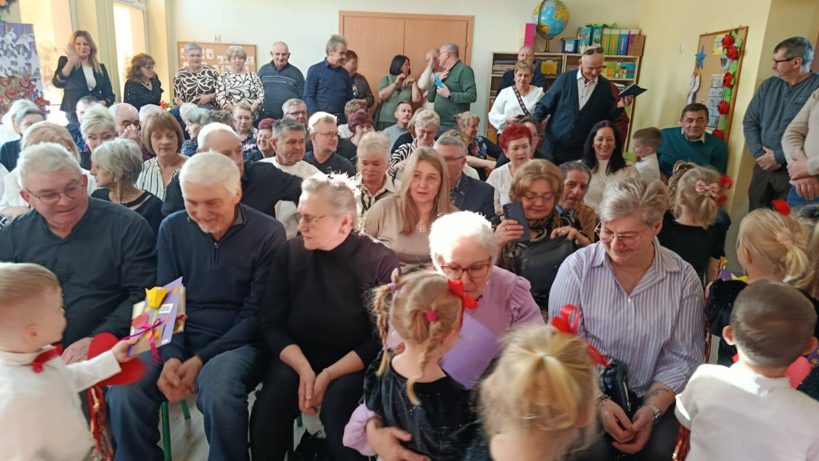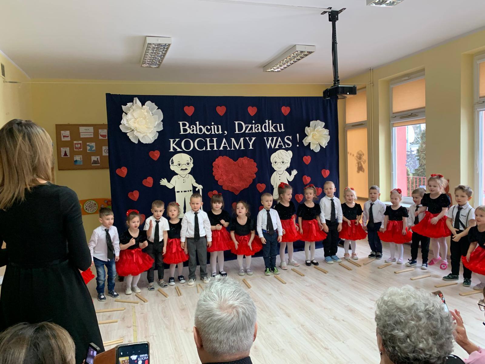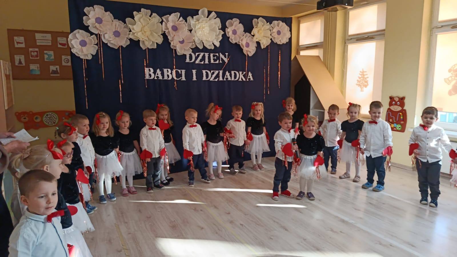 z ogromnym zaangażowaniem zaprezentowały przygotowane piosenki, wiersze i tańce, nagradzane gromkimi brawami oraz uśmiechami dumnych babć i dziadków. Atmosfera była ciepła i rodzinna.