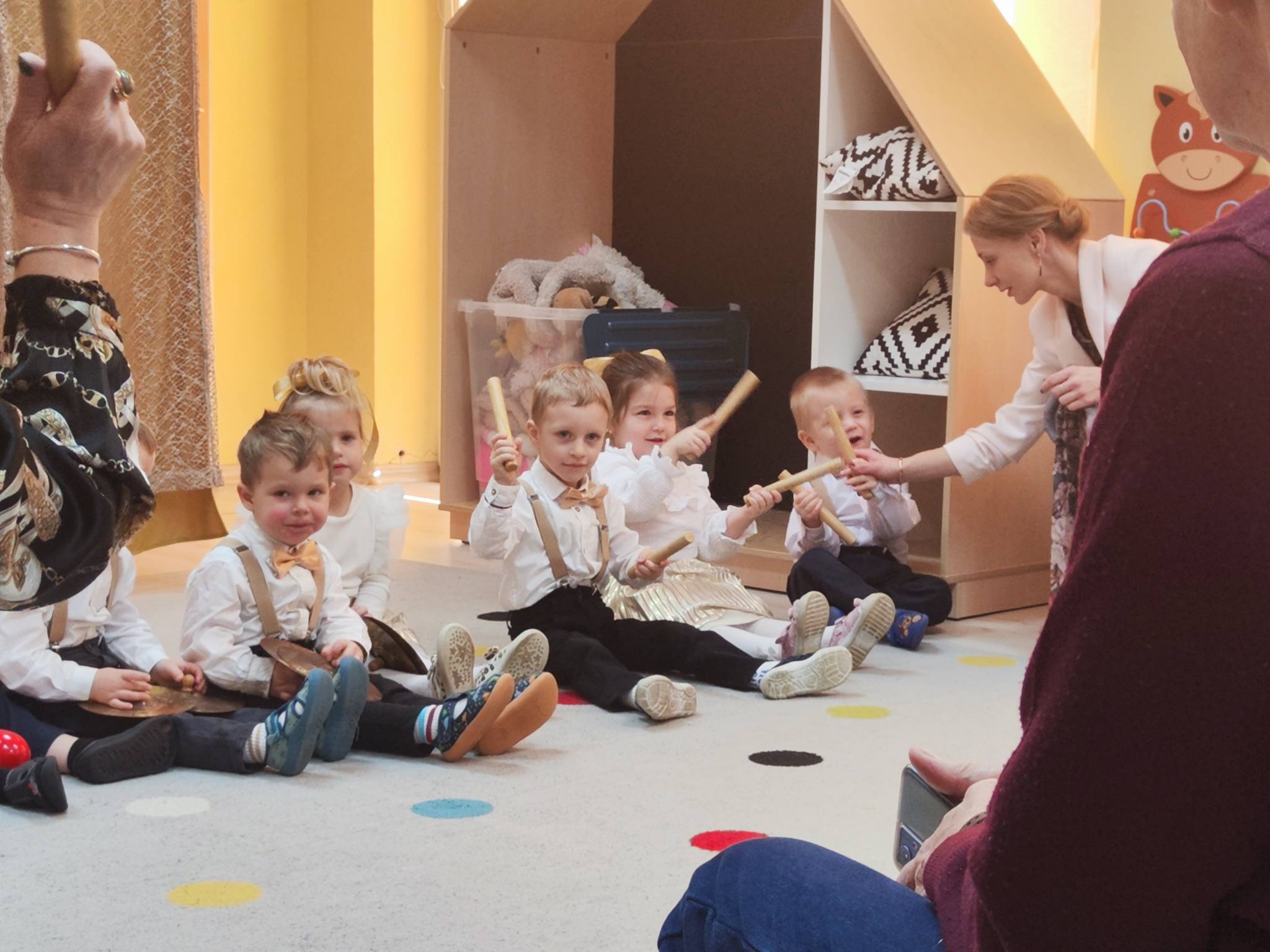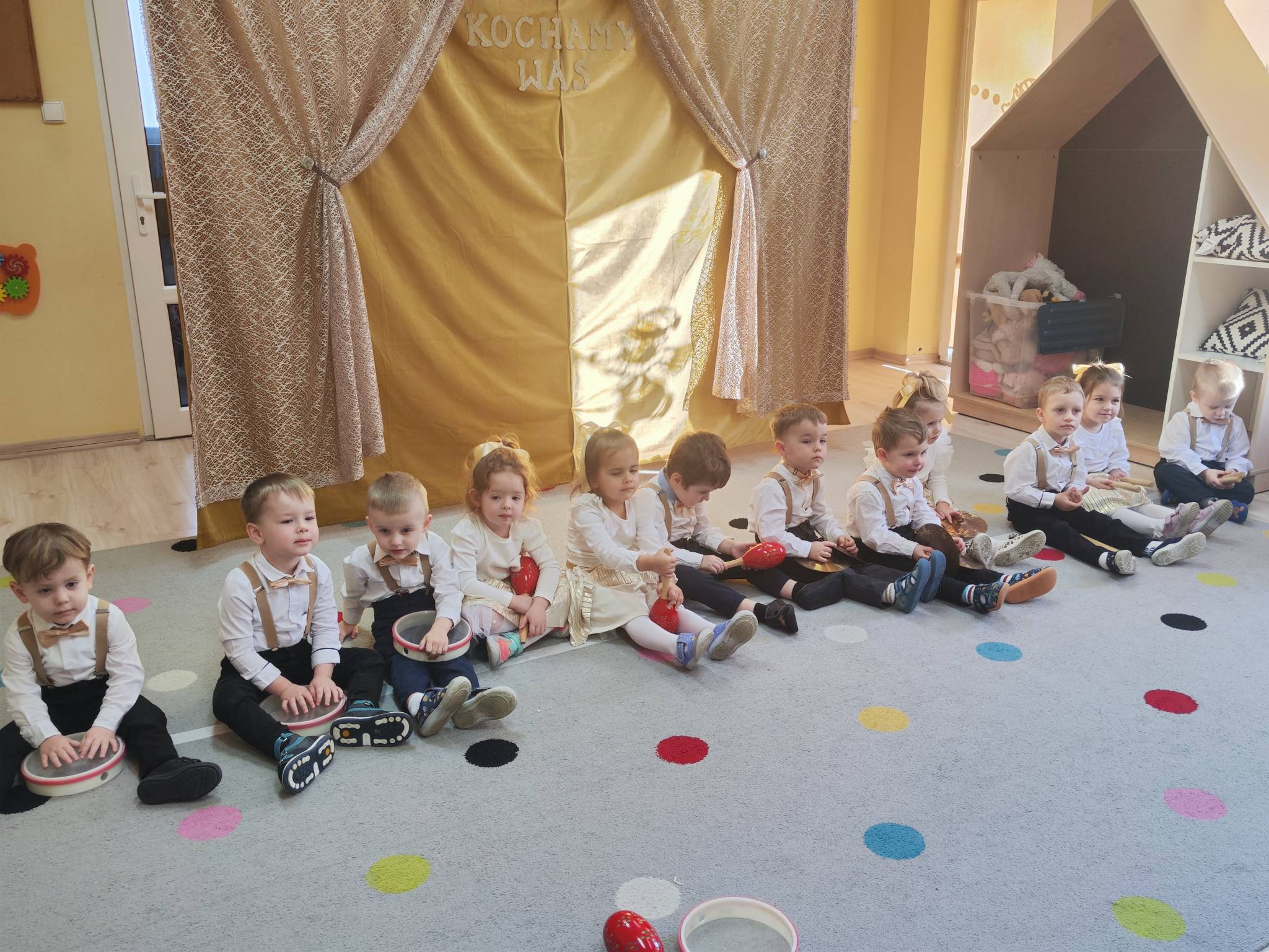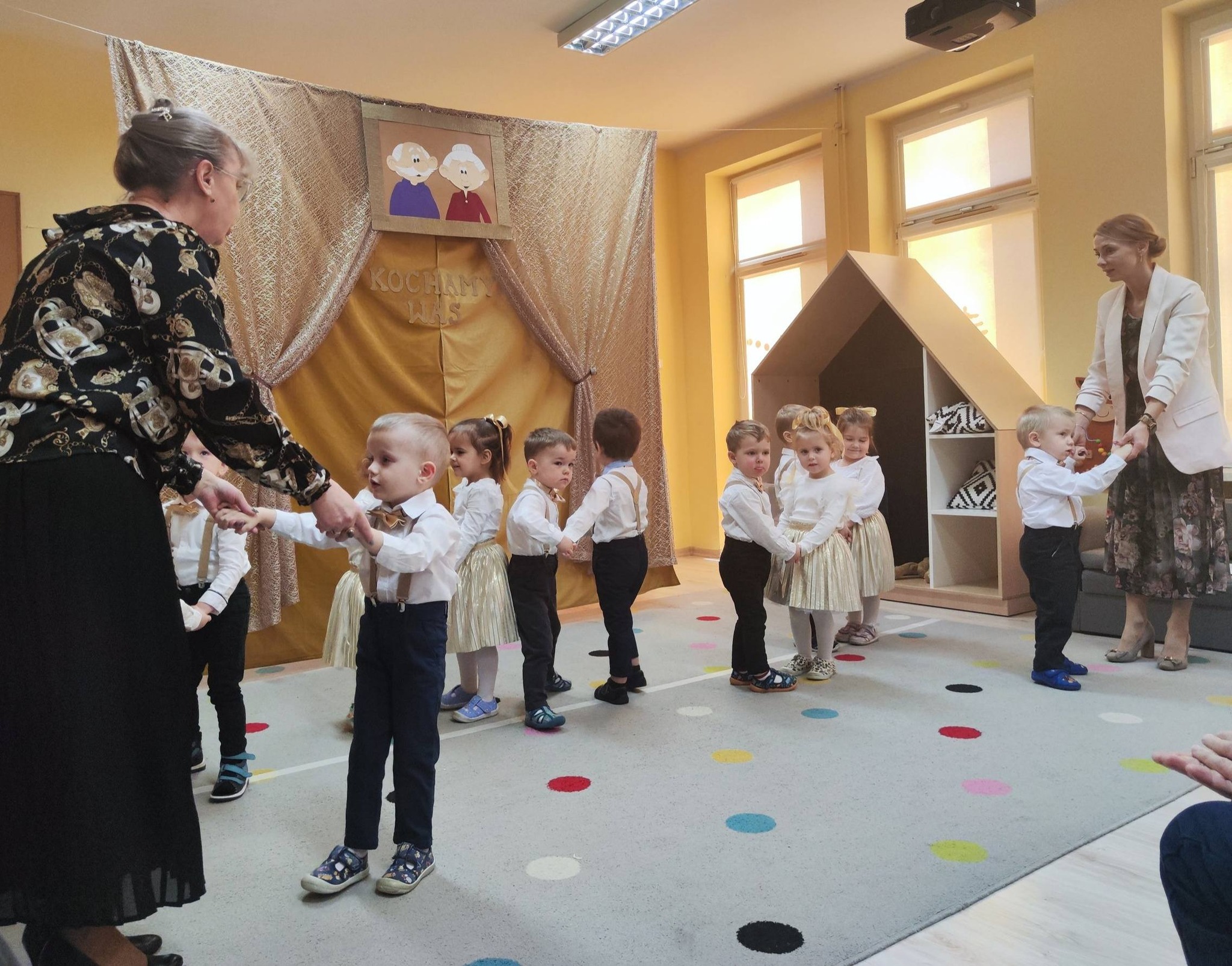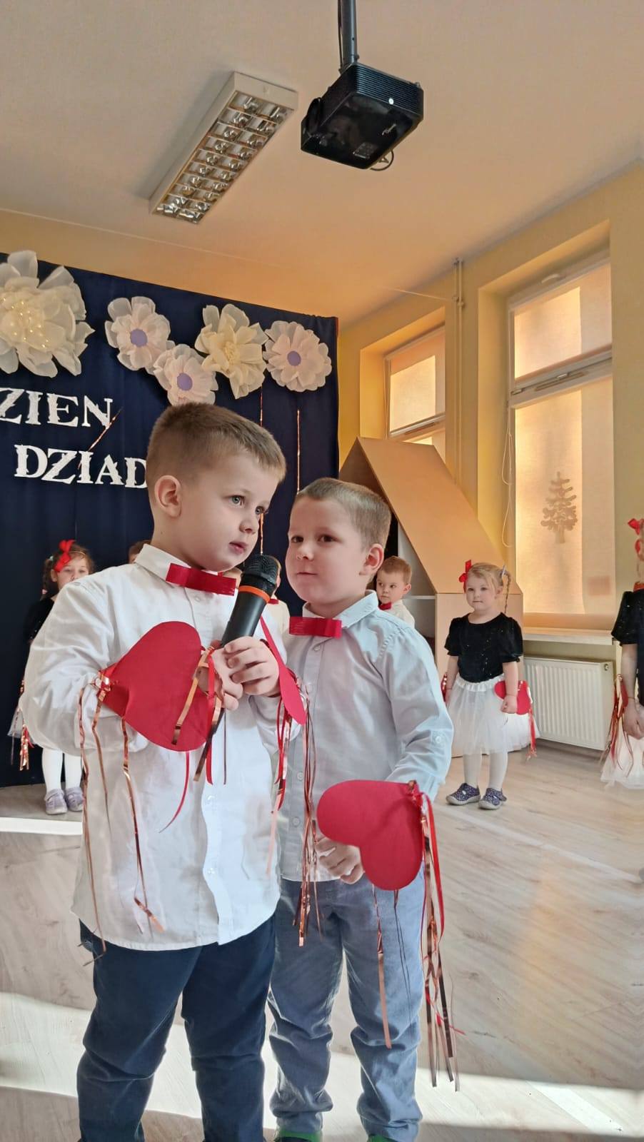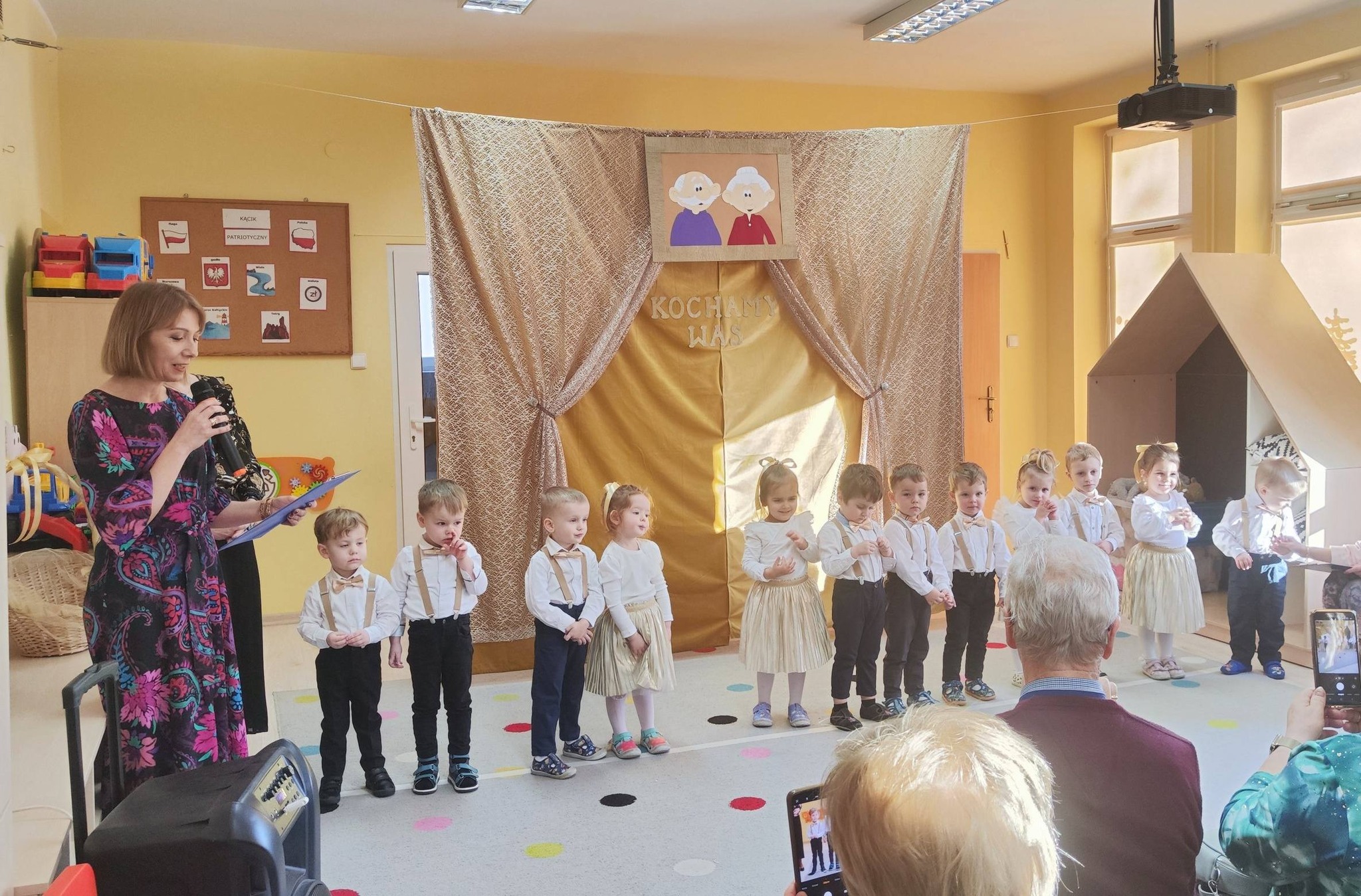 z ogromnym zaangażowaniem zaprezentowały przygotowane piosenki, wiersze i tańce, nagradzane gromkimi brawami oraz uśmiechami dumnych babć i dziadków. Atmosfera była ciepła i rodzinna.